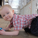 So we moseyed home in the late afternoon sunshine and chilled on the porch for awhile. P decided to organize his cars in several places (see pics above) -- SUCH a typical activity for him. J and I were discussing evening plans (you know, the kind that don't address what actually NEEDS to be done but rather what we WANT to do), and I threw out a few movie ideas, which J shrugged off. Then I said to him, "Well, what other happy movies can you think of to watch?" And after a pause, P looked up from his cars and said simply, "Ning-ning," his word for "Lightning," the main character in Cars. J and I just started laughing. P is so much smarter than we give him credit for -- and it's slightly unnerving at times like these to realize that he understands 85-90% of what we're saying because he throws in his two cents. Of course, when the Little Diplomat saw us laughing, he really pressed his case and rattled off the names of the other Cars characters -- "Doc," "Wee-ja" [Luigi], "Ma-ma" [Mater... I try not to take this personally :)], "Darge" [Sarge] -- as he promptly went in the house and sat on the couch, expecting us to put in the movie right away. Maybe he WILL be a lawyer like his Uncle C. Thank you, Pixar, for expediting the argumentation education of our son at his ripe old age of 21 months. And no, we didn't actually watch his selected movie but another Pixar flick -- which he actually loved. Maybe we're going to move beyond Cars someday!